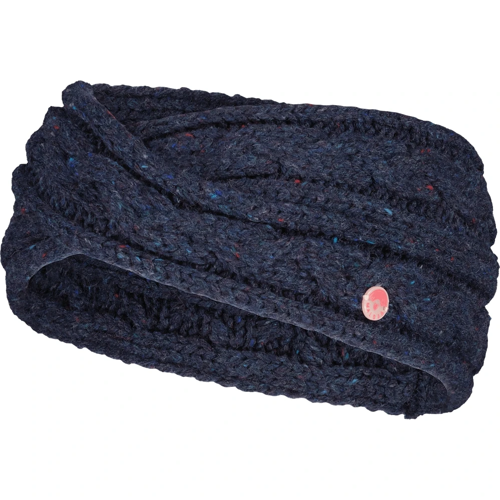 Gemêleerde, brede gebreide hoofdband met gekruiste kabelsteek in wolmix, met klein emaillabel.
