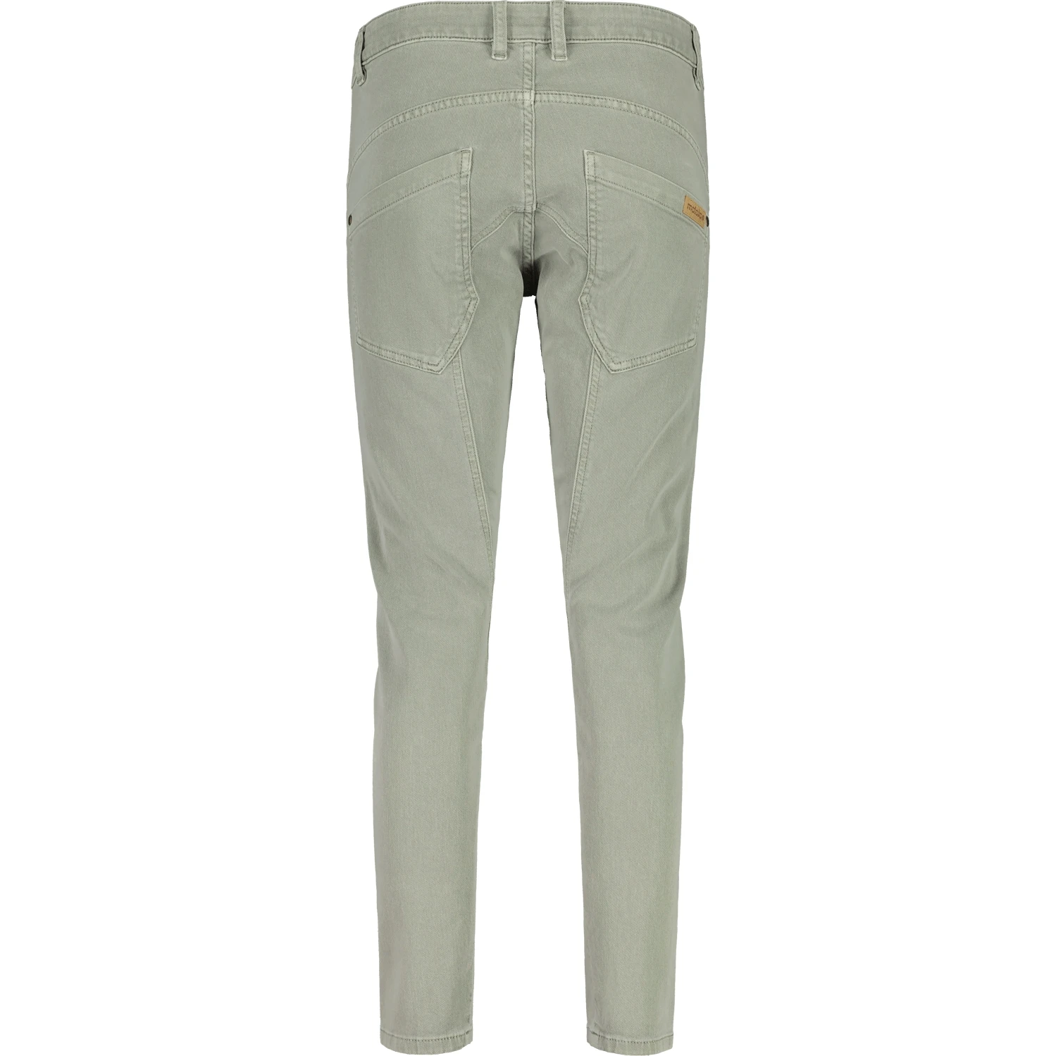 Gekleurde broek met omgeslagen zijnaad, twee steekzakken voor en een muntzakje, twee opgezette achterzakken, lage taille en slanke pijpen, opvallende knoopsluiting voor. Kleine Maloja-patch op de rechterachterzak.