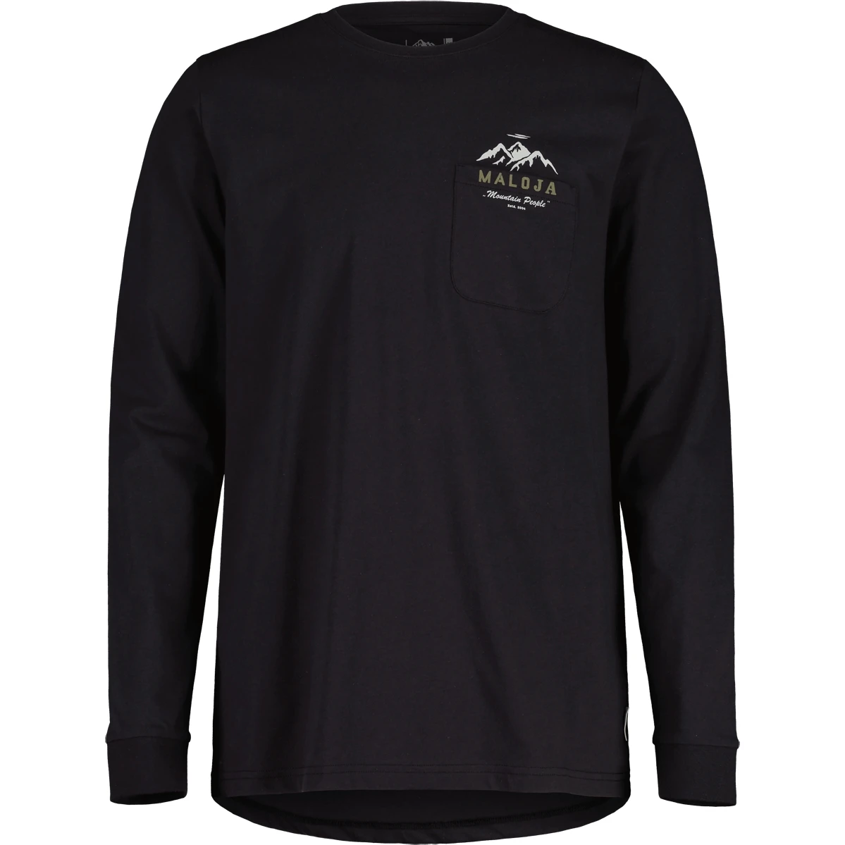 Losvallende longsleeve van eerlijk en biologisch geproduceerd katoen, online traceerbaar volgens de bioRe-standaard. Geribde manchetten, iets langere achterkant, opgestikte borstzak met kleine Maloja bergopdruk.
