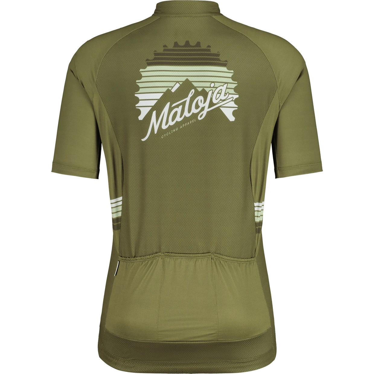 De DentroM. Trui 1/2 heeft een slanke pasvorm, een doorlopende ritssluiting, drie achterzakken en sneldrogend materiaal, en biedt alle kenmerken van een klassieke trui. De gestreepte inzet aan de zijkanten en het grote Maloja-logo met kettingrand aan de achterkant geven het een onafhankelijke uitstraling.
