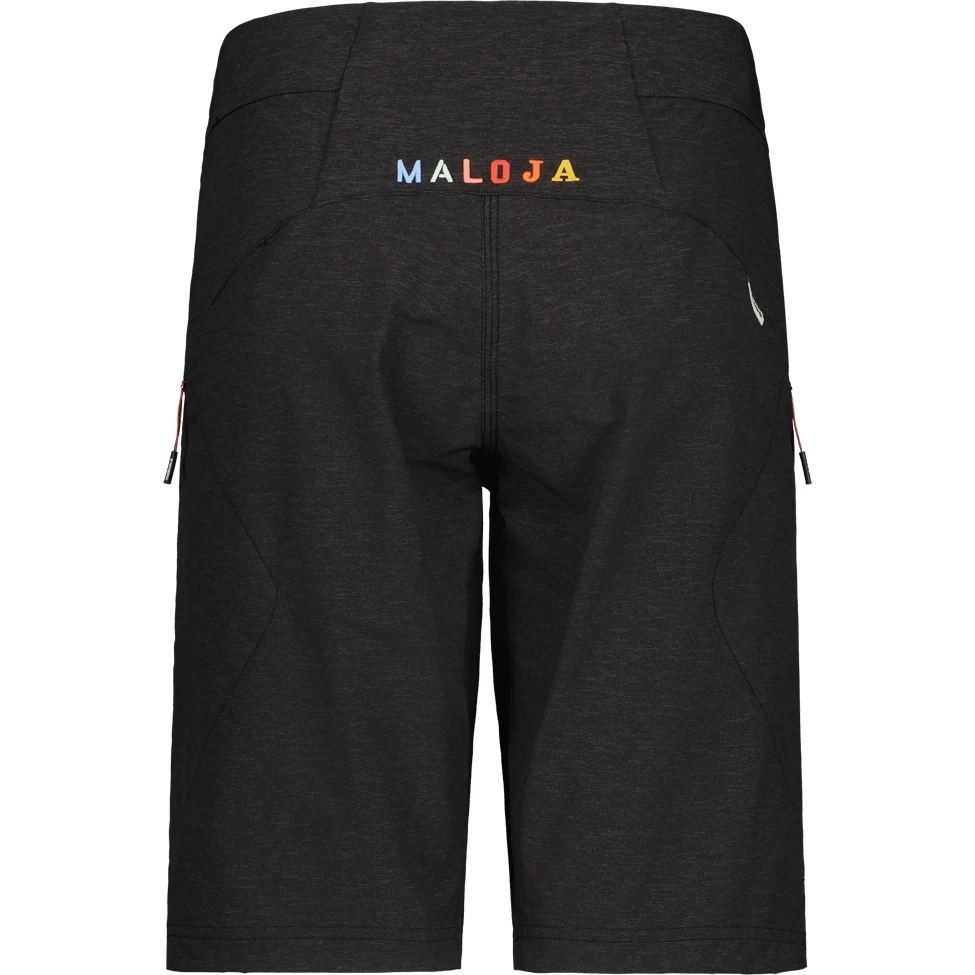 De innovatieve MTB- en multisportbroek van elastisch materiaal heeft een milieuvriendelijke, waterafstotende afwerking. Twee voorzakken met blinde rits, twee dijbeenzakken en een achterzak met blinde rits. De tailleband kan gemakkelijk worden aangepast. Happy Mountain Rainbow patch onder de linkerzak, Rainbow Maloja borduursel op de rug.
