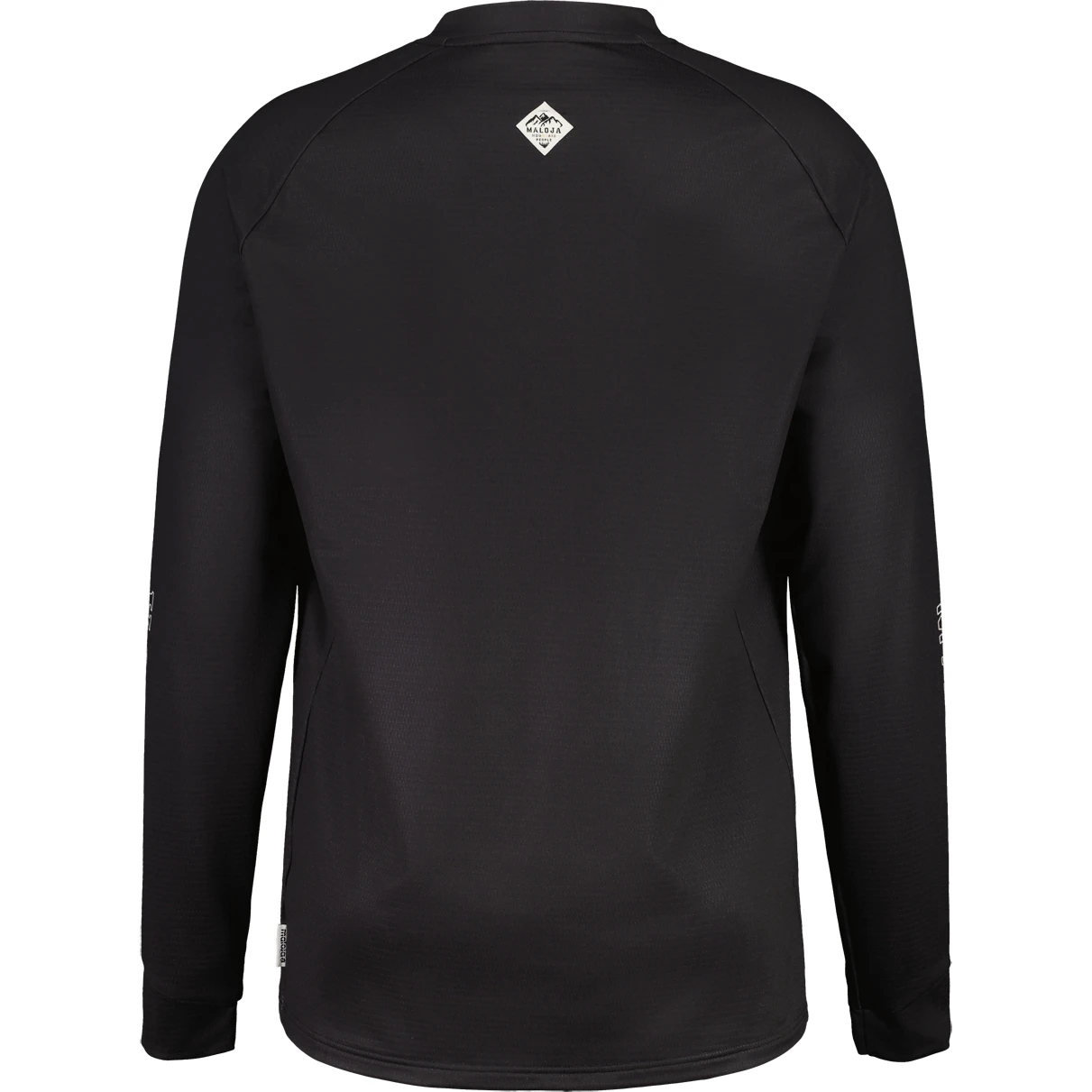 Het elastische, sneldrogende en verwarmende thermopile materiaal van dit comfortabel gesneden enduro shirt is ideaal voor koelere dagen of als mid-layer. Maloja letters op de borst en mouwen, Maloja patch in de nek.