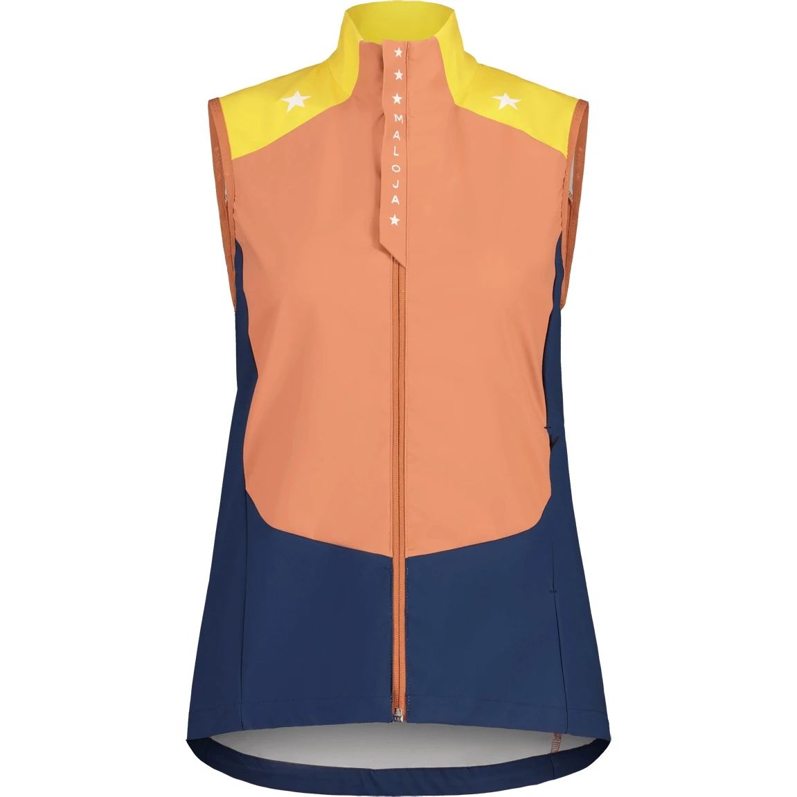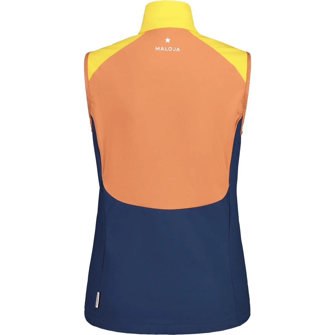 Dit multifunctionele vest biedt goede windbescherming dankzij het Stormshell light materiaal op de voorkant en schouders. Bij de hoge kraag en boven op de borst wordt de ritssluiting afgedekt door een flap met Maloja-opschrift. Verstelbare tailleband en een zakje met rits voor je smartphone. Ster op de schouder, Maloja-logo in de nek.