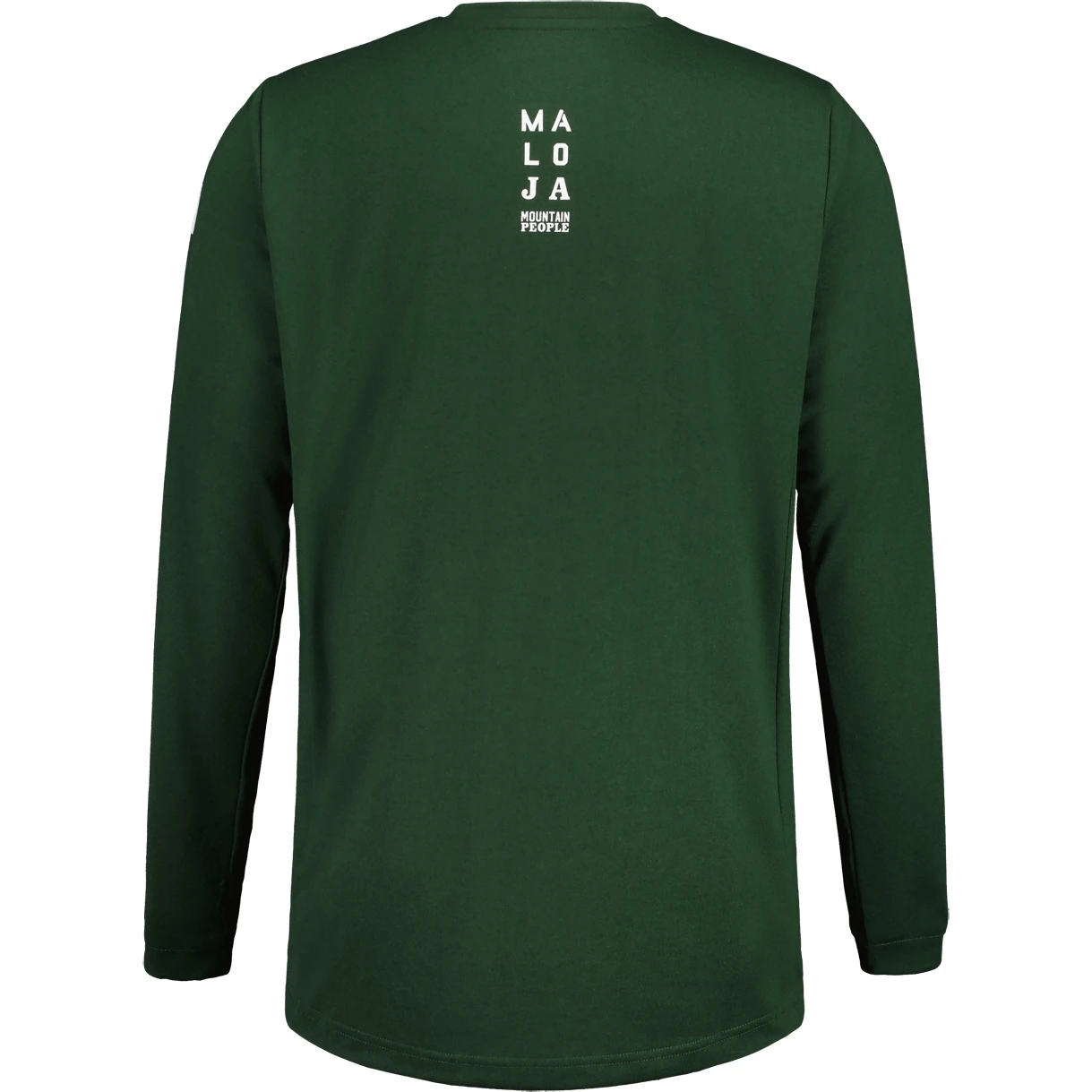 De materiaalmix van gerecycled polyester en hennep zorgt voor een aangenaam, natuurlijk gevoel en droogt snel. Geïntegreerd zakje in het linker zijpaneel voor liftkaartje, sleutels of geld. Frisse kleuropties en Maloja letters op de mouwen en rug, Mountain People patch op de voorkant.