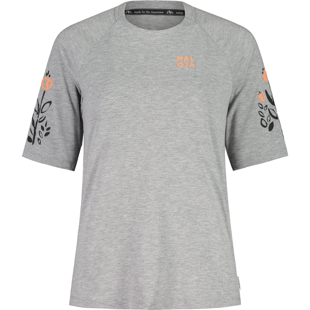 Het ruimvallende shirt is gemaakt van hoogwaardig Naturalon dat snel droogt, maar toch heel natuurlijk aanvoelt en comfortabel is om te dragen. De verhoogde rubberen bloemenprint op de mouwen en de Maloja-letters op de borst en in de hals zijn leuke ontwerpdetails.