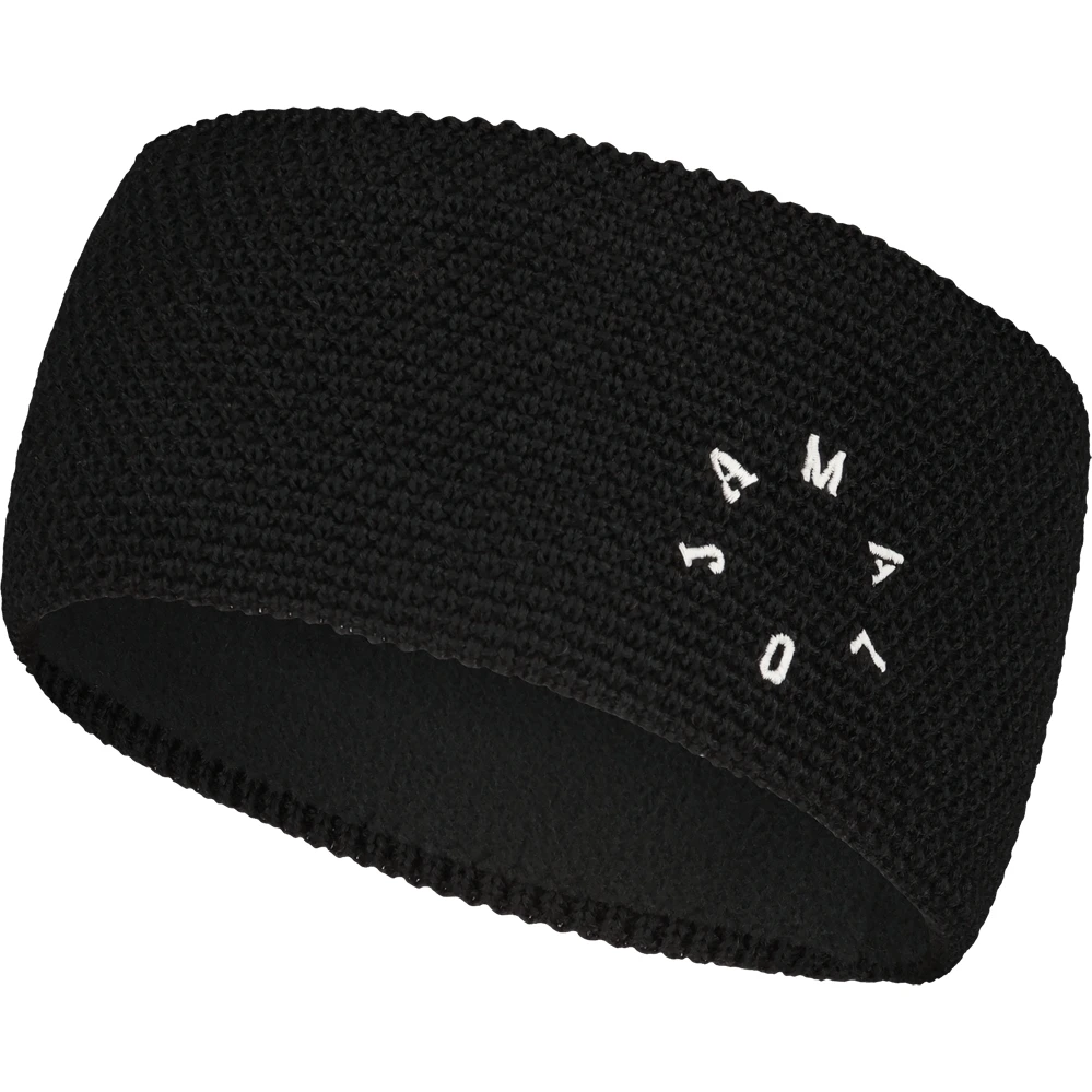 Grof gebreide hoofdband van wolmix, warme fleece voering aan de binnenkant, met geborduurde ronde Maloja letters.