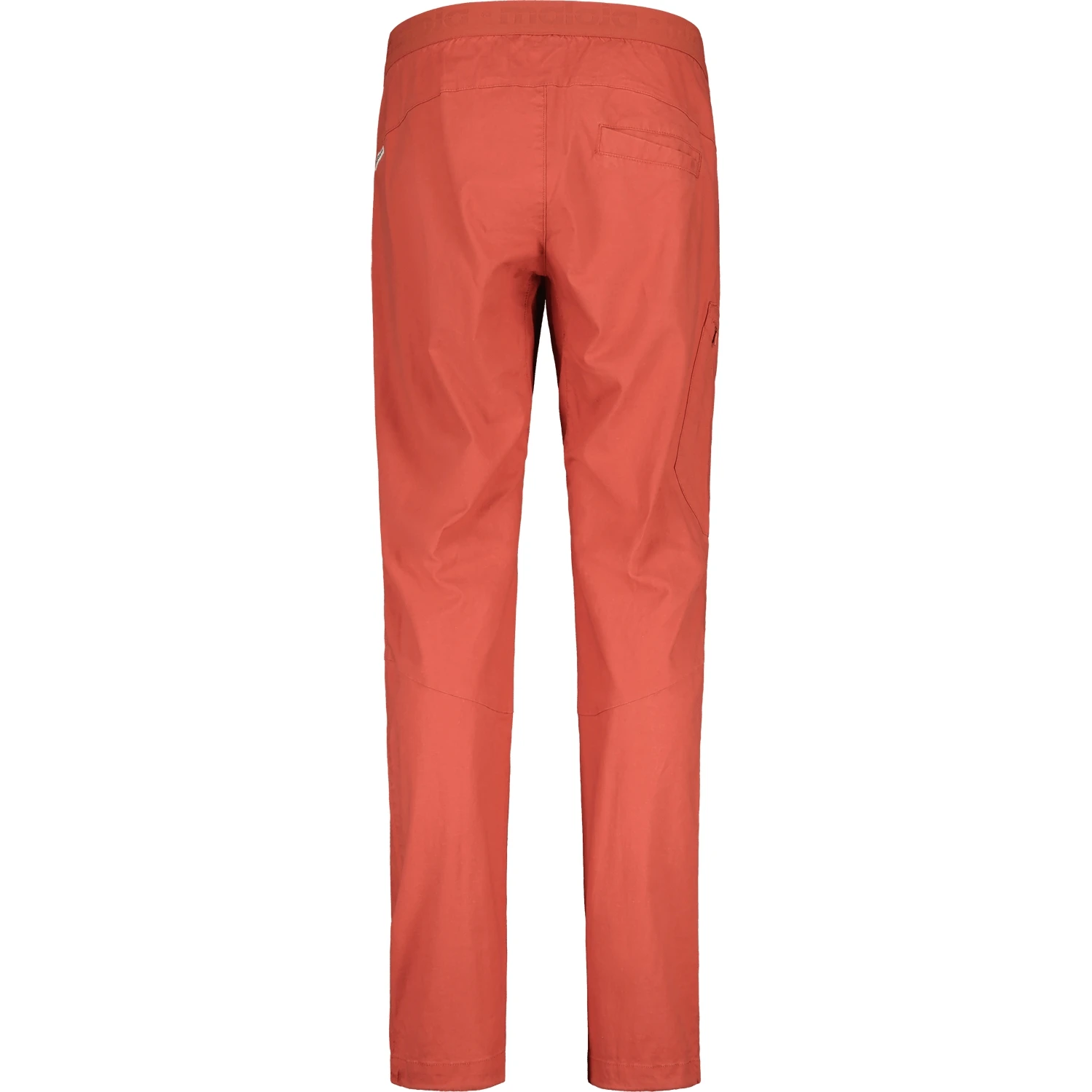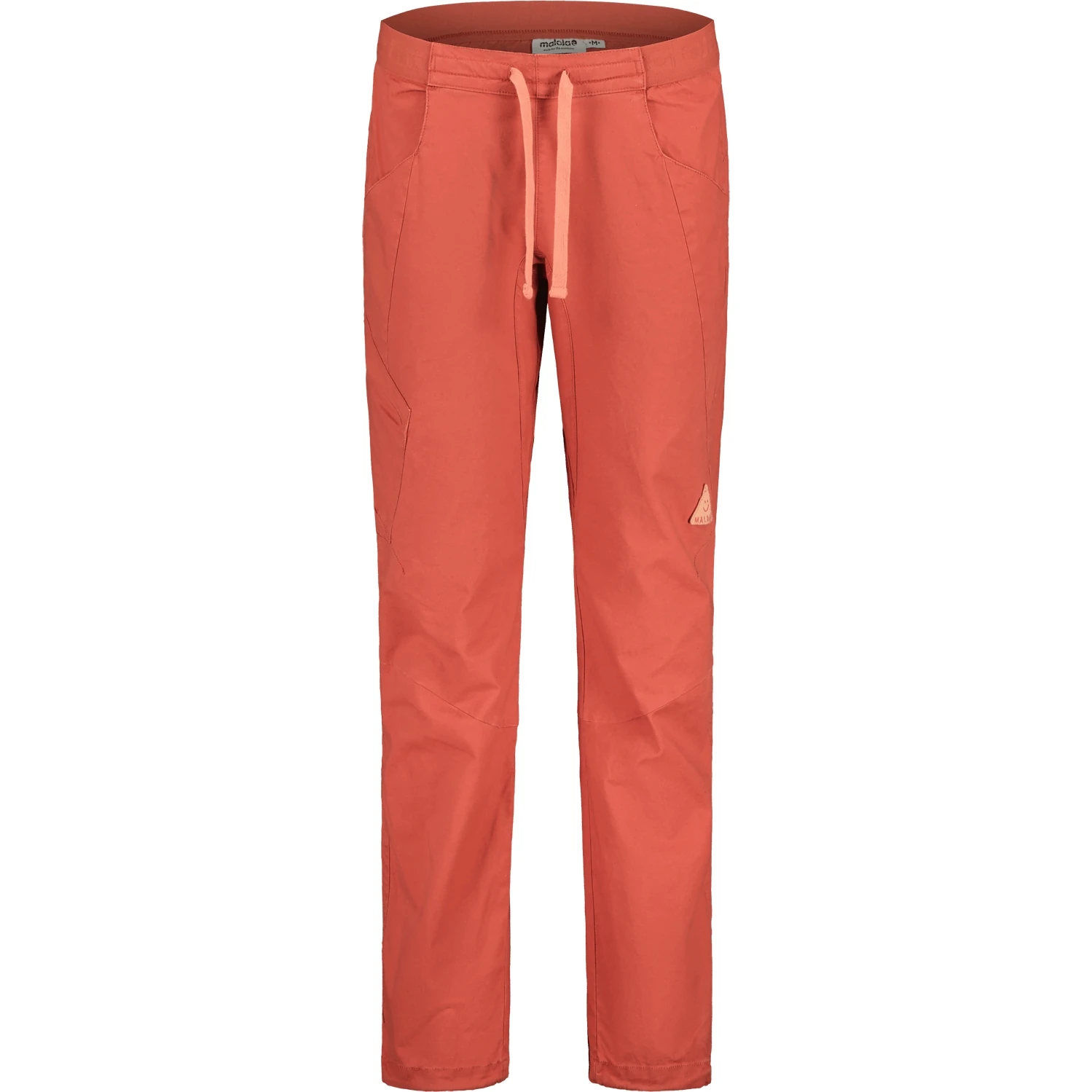 LaverneM. met zijn losse snit, voorgevormde knieën en licht rekbaar materiaal van hennep en biologisch katoen biedt de bewegingsvrijheid die nodig is bij het boulderen. Bovendien zorgt de materiaalmix voor een aangenaam natuurlijk gevoel. Met twee zijzakken en een zijzak met ritssluiting op het rechter bovenbeen en het trekkoord werkt het echter ook perfect voor alle andere buitenactiviteiten. Happy Mountain patch boven de linkerknie.