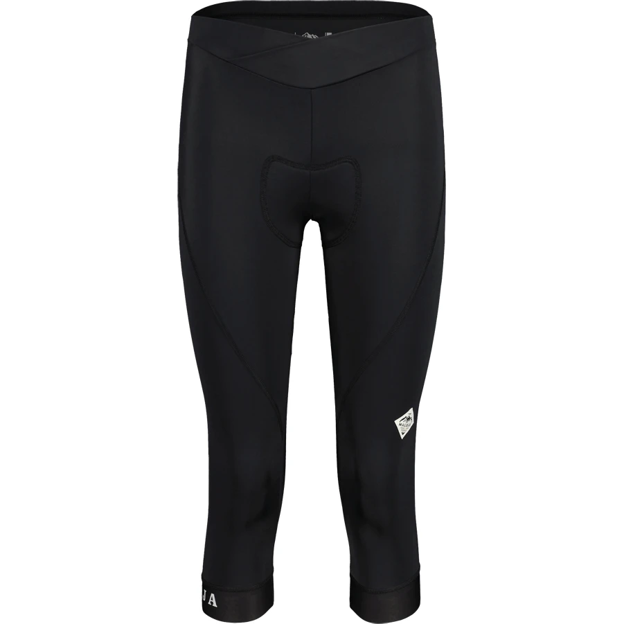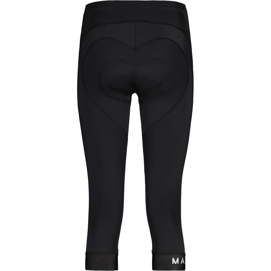 Flatlocknaden, siliconen beenmanchetten en elastische inzetstukken in de achterste tailleband zorgen voor een goede pasvorm en comfort. Het Peak-zadelstuk met Polygiene StayFresh™-technologie is ontwikkeld voor een veelzijdig gebruik voor alle fietscategorieën en biedt een hoog zitcomfort voor tochten van gemiddelde lengte. Maloja letters op de beenmanchet.