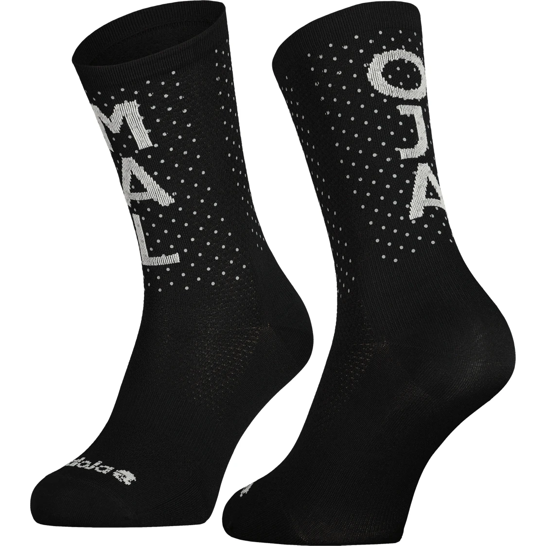 Sneldrogende sportsokken in een moderne lengte met gespleten Maloja-letters en reflecterende stippen.