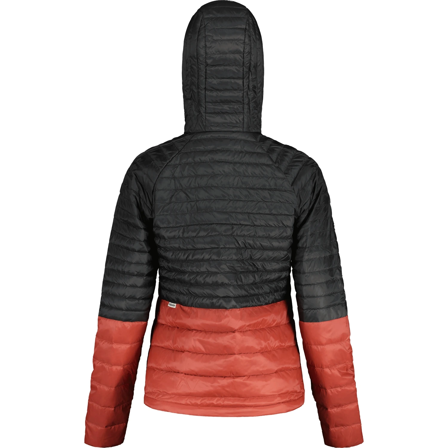 Slipjack met capuchon en gerecyclede donsvulling, opening met rits aan de voorkant, zijsplitopening in de zijnaad, kleine zak met verborgen rits. De iso-layer is winddicht en kan klein worden opgeborgen in de zak, dus hij werkt solo of als tweede laag onder een shell – als een sportieve metgezel in de stad of een lichte metgezel voor toertochten en outdoor.